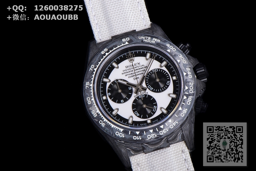 【产品介绍】TW厂 ROLEX宇宙计时迪通拿系列之碳纤维定制版,腕表不仅佩戴轻便,外表坚硬。且每一只腕表都拥有独一无二的碳纤花纹。