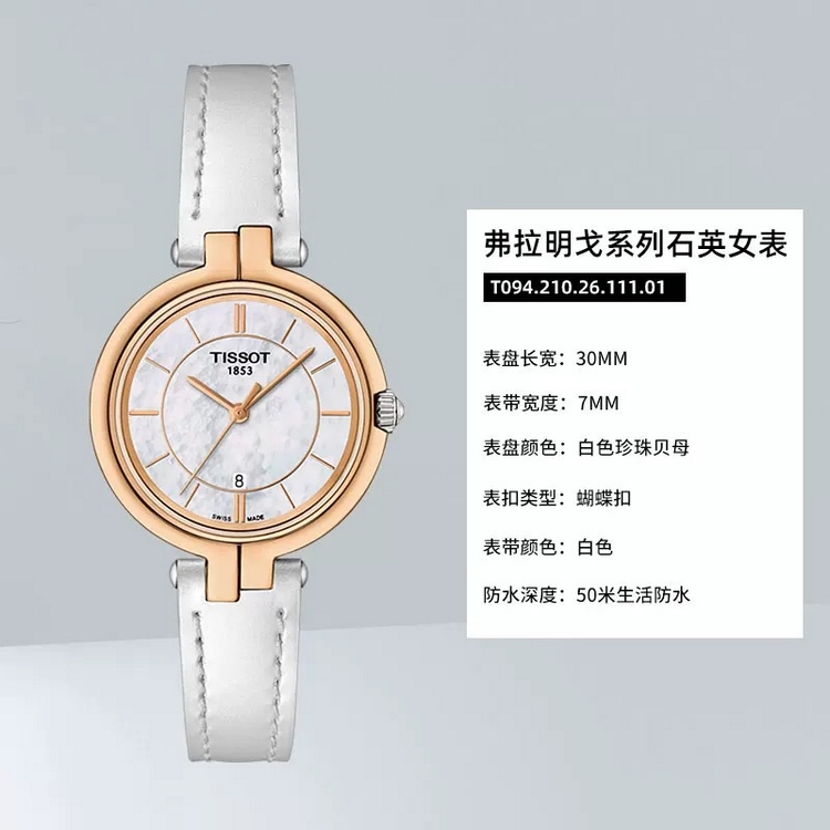 高端精品 天梭(TISSOT)弗拉明戈系列瑞士石英时尚女士腕表 送礼送女友七夕情人节礼物首选